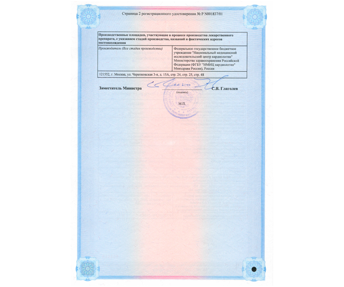 Препарат зарегистрирован в Российской Федерации (регистрационный номер Р N001837/01) и разрешен для медицинского применения и промышленного выпуска.